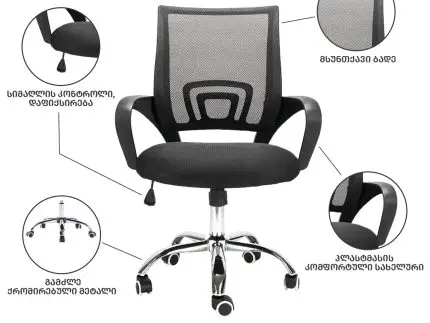 გაუმჯობესეთ თქვენი სამუშაო სივრცე მაქსიმალური კომფორტითა და ელეგანტურობით ჩვენი ერგონომიული, მაღალი ხარისხის საოფისე სკამით. დამზადებულია გამძლე და პრემიუმ მასალებისგან, რაც