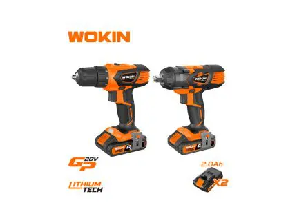 სახრახნისის და ქანჩის მოსახსნელის ნაკრები Wokin 628102, 1500Rpm, LI-ION CORDLESS 2-PC. COMBO KIT, Black/Orange
