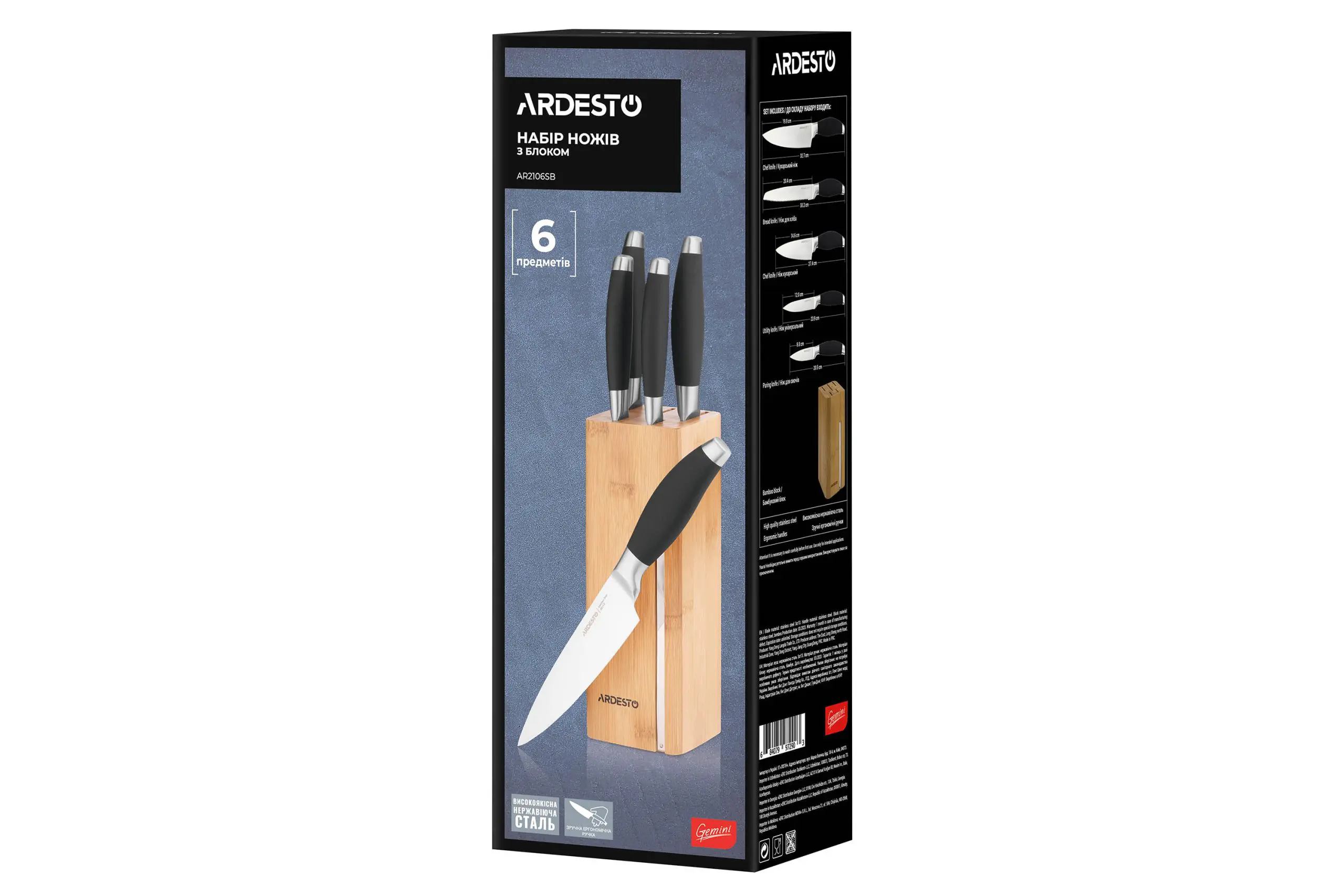 იყავით პირველი შემფასებელი: „დანების ნაკრები Ardesto Gemini, 6 ცალი, უჟანგავი ფოლადი, ბამბუკის ბლოკით“