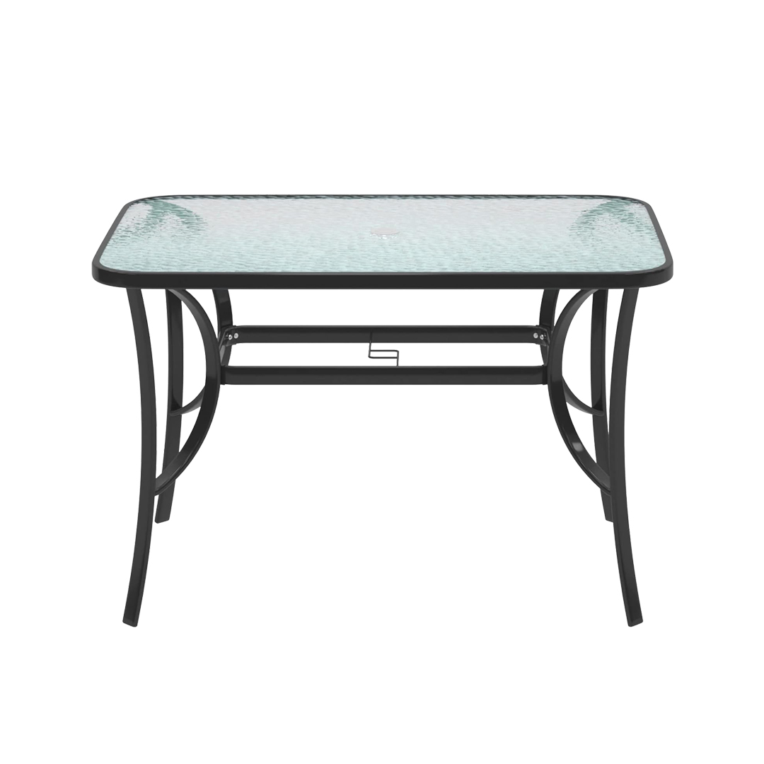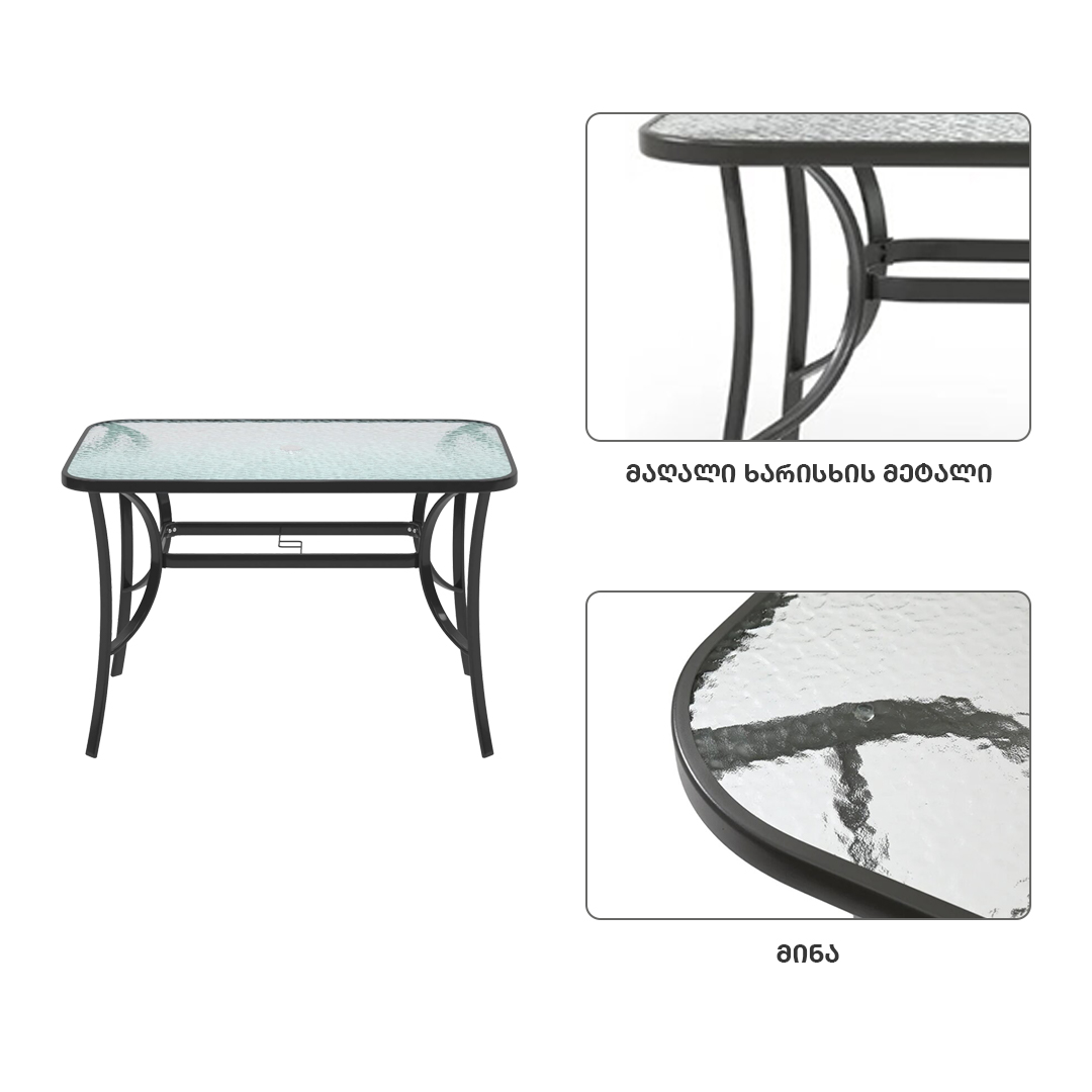 ნაწრთობი მინის მაგიდა, ქოლგის სამაგრითა და მეტალის კარკასით თქვენს ინტერიერსა თუ ექსტერიერს შესძენს მყუდროებას და გამორჩეულ დიზაინს.