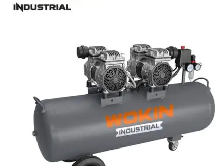 ჰაერის კომპრესორი ზეთის გარეშე Wokin 831512, 2x1380W, 100L, Silent And Oil Free Air Compressor, Grey