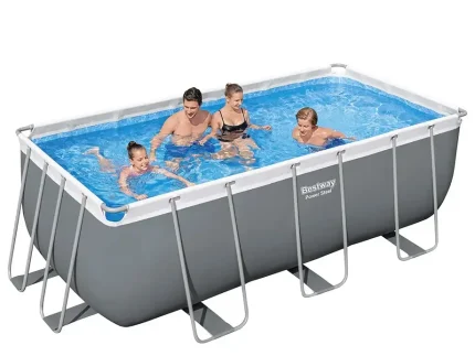 აღწერა აუზის ზომა: 4,12მ x 2,01მ x 122სმ წყლის ტევადობა(90%): 8124ლ აუზის ფორმა: მართკუთხედი აუზის გარე ფერი: მუქინაცრისფერი აუზის შიდა